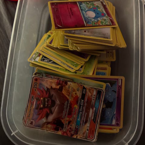 Pokémon samling af kortspil med forskellige korttyper og motiver. Samlingen vejer i alt 781gram (ca 400 kort) og indeholder en blanding af energikort, trænerkort og Pokémon-kort. Kortene kan bruges til samling eller spil.