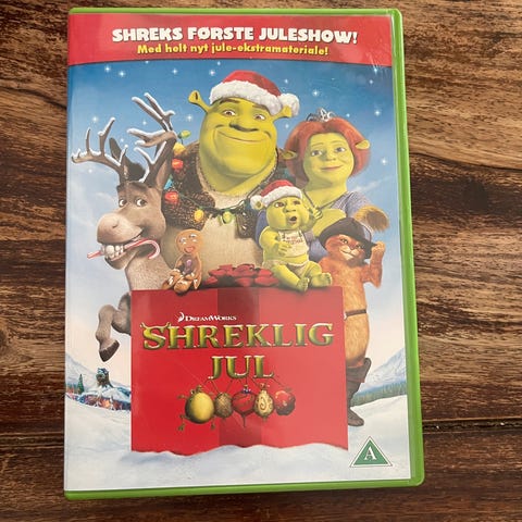 Sælger DVD’en Shreklig Jul (Shrek’s første juleshow). Disken fungerer fint, og coveret er i god stand.