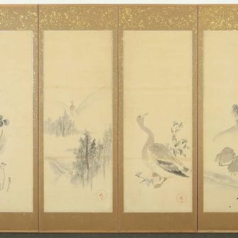 Byōbu foldeskærm - Sæsonens skønheder og fugle - Japan - Meiji-perioden (1868...