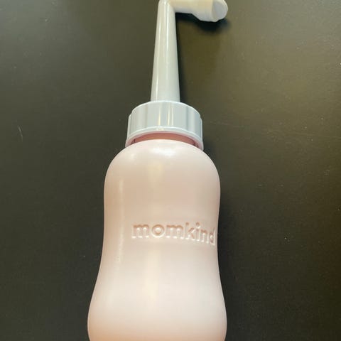 Momkind skylleflaske samt en ekstra flaske til toiletbesøg efter fødslen. BPA fri plastik, 300 ml.