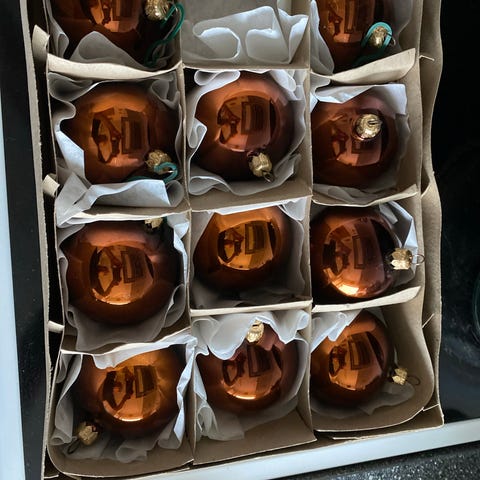 12 julekugler sælges samlet i Hillerød for i alt 50 kr