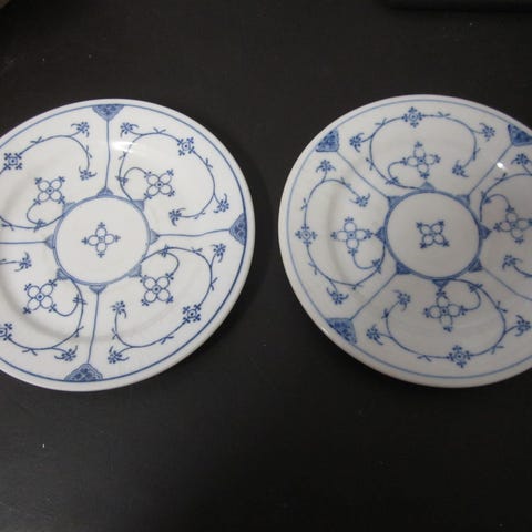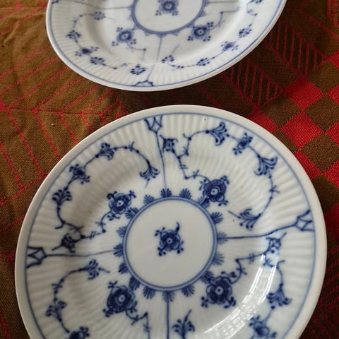 2 stk tallerkener mønster som musselmalet porcelæn fra Royal Copenhagen, men tror det er tysk.