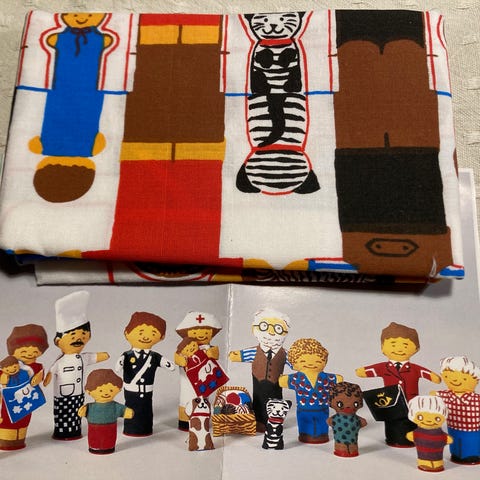 Tilda dukker og tilbehør med forskellige designs og farver. Produkterne omfatter bløde tekstildukker og tilhørende dekorative elementer, velegnet til samling eller pynt.