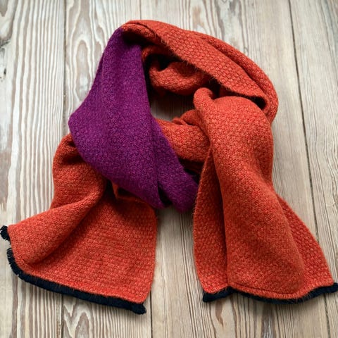 Tørklæde fra POM Amsterdam 43x210 i grønne farver med sorte frynser