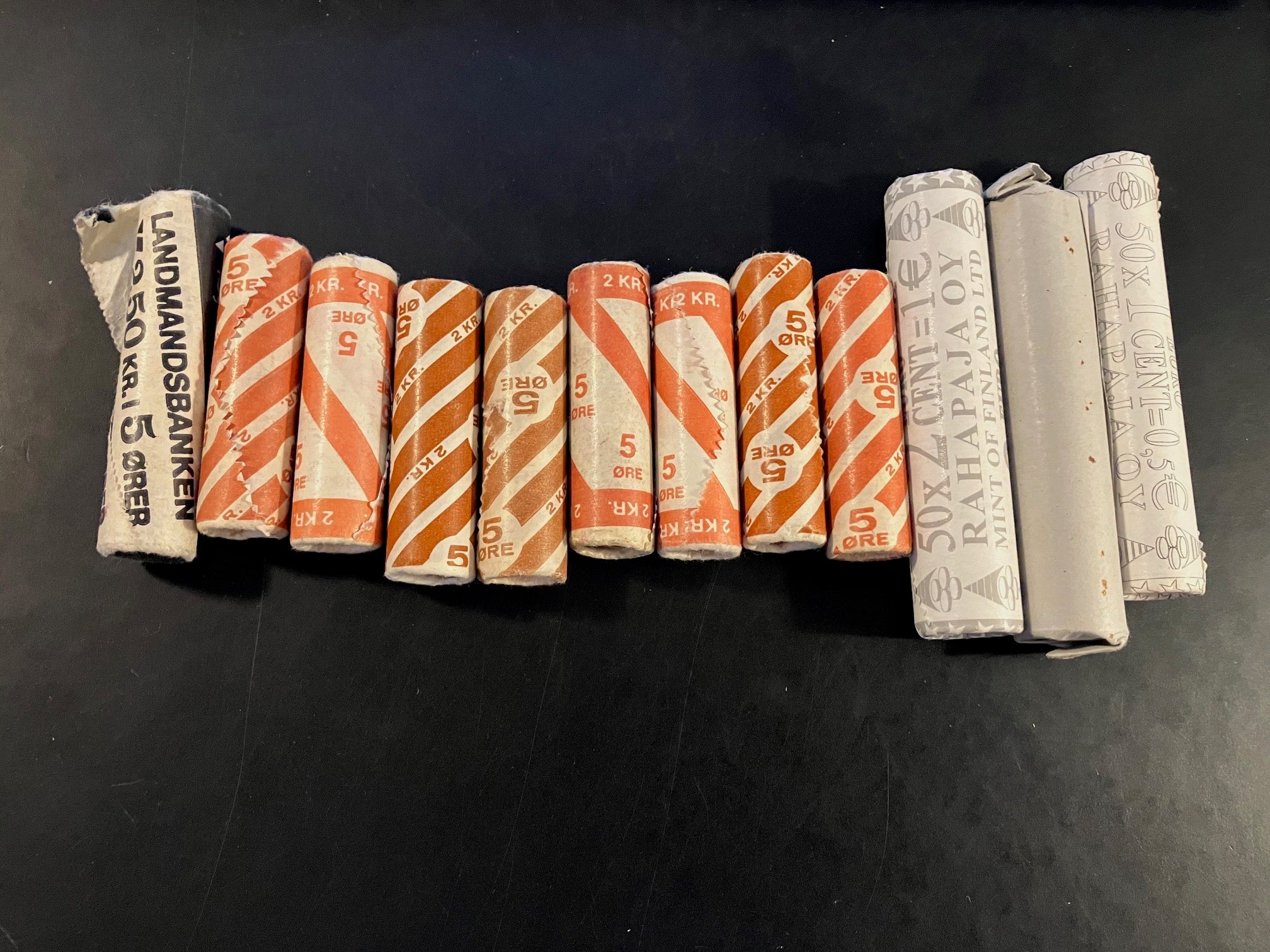 12 Mønterruller - 9 stk danske samt 3 stk Euro