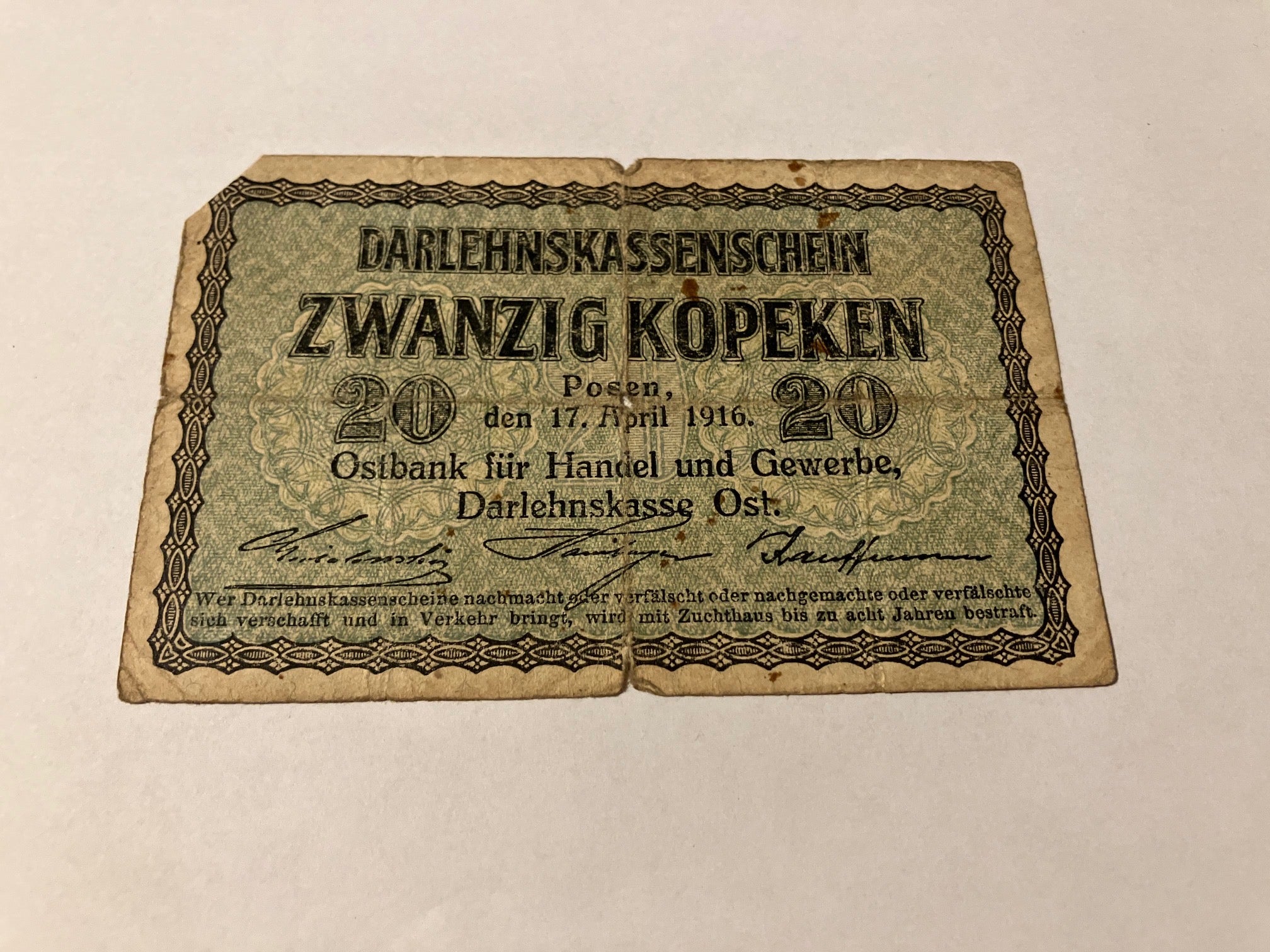 20 Kopeken Ostbank für Handel und Gewerbe, Darlehnskasse Ost 1916