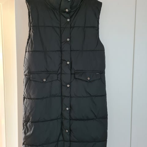 Golden live vest i beige farve lavet af viskose og polyester materiale. Passer til kvinder i størrelse One Size. Vestens design inkluderer knapper foran og en glat overflade med palietter,