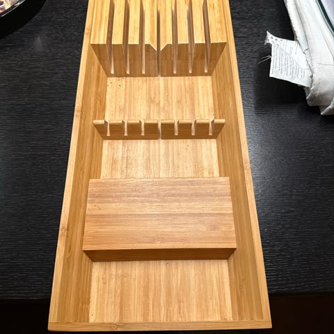 IKEA opbevaringsbakker i bambus designet til organisering af bestik og køkkenredskaber. Sættet indeholder flere bakker med forskellige ruminddelinger, der passer til forskellige størrelser af bestik. Sælges samlet.