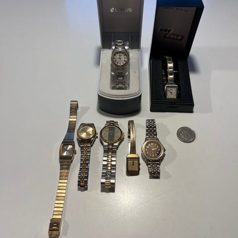Disse ure trænger til nye batterier, og deres funktionsdygtighed kendes ikke. De sælges derfor som beset (uden garanti) – perfekt for dig, der ønsker et udvalg af stilfulde ure til billige penge.