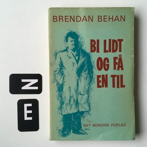 Bi lidt og få en til, Brendan Behan, genre: roman, Org.hæftet roman, udgivet på Nyt Nordisk Forlag, 1964, 179 sider.
