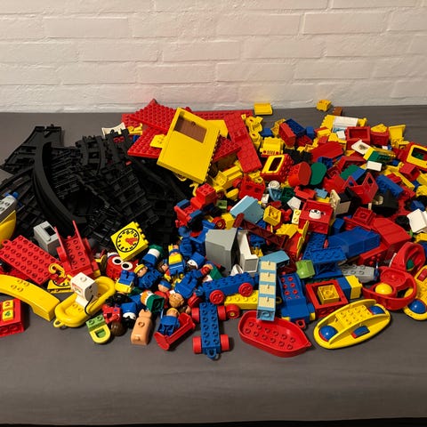 2 store kasser LEGO DUPLO og 2 store bygge plader