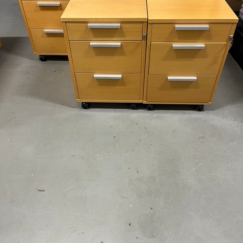 Kontormøbel med 4 skuffer fremstillet i træ. Møblet er udstyret med hjul for nem flytning og opbevaring. Skufferne giver god plads til opbevaring af kontorartikler eller dokumenter.