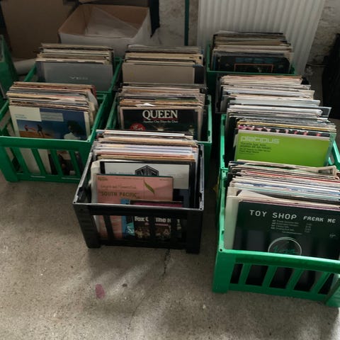Samling af vintage plader og papomslag