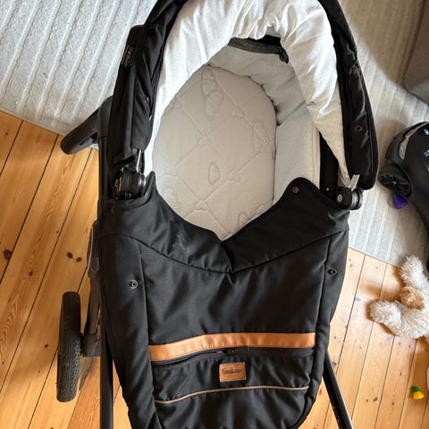 Alt fungerer fint men, men læderet på håndtaget er gået på den ene side som det ses på billedet (dette kan fikses hos emmaljunga hvis det ønskes).