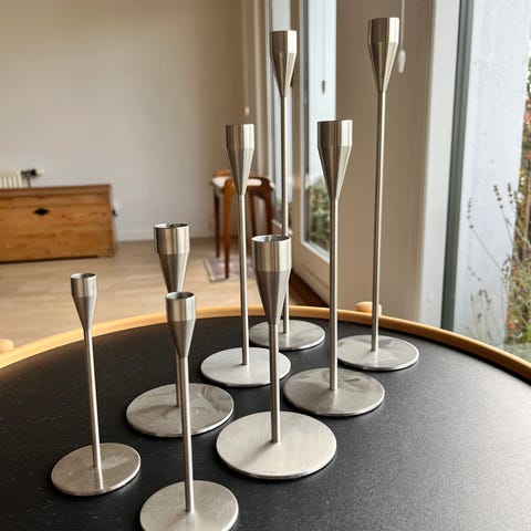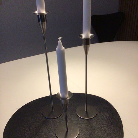 Den ikoniske serie af lysestager fra Piet Hein "Planet-serien", hvor hver stage er opkaldt efter en planet. Her i en særudgave med 3 mindre størrelser, der passer til smalle julelys (bemærk - ikke til almindelige kronelys).