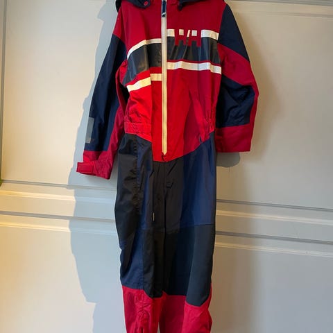 Helly Hansen Flydedragt i rød og sort farve, designet til unisex brug. Dragtens materiale og specifikationer er velegnede til sikkerhed og beskyttelse ved vandsport eller arbejde i våde miljøer. Produktet opfylder relevante sikkerhedsstandarder for flydedragter.