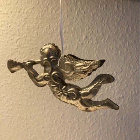 Metal engel metalengel m hvide bånd til ophæng evt i vindue vindueskarm på grene stort juletræ