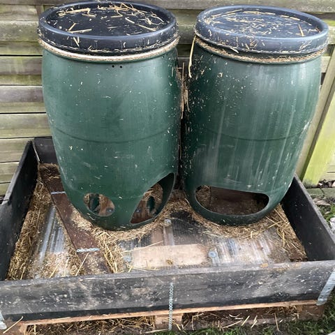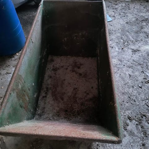 Ældre 10 kg vægt, hvor man kan hænge en spand eller lignende op, for afvejning af foder til sine heste eller andre husdyr.