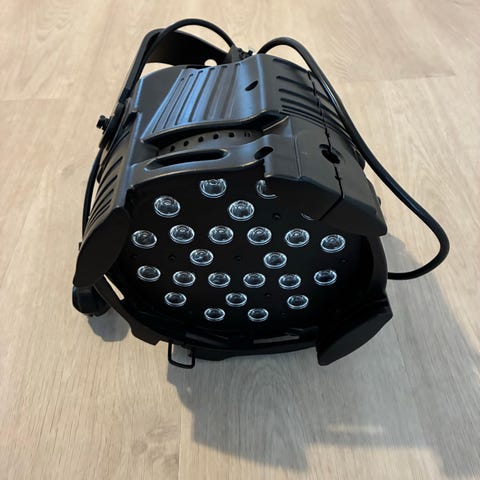 Sæt bestående af to sorte teater spotlights med monteringsbeslag og justerbare lamper. Designet til brug i teater- eller sceneopsætninger for belysning. Fremstillet i metal med robuste holdere til fastgørelse. Tror at de begge er 1000W pære. Kan evt afhentes i Ballerup