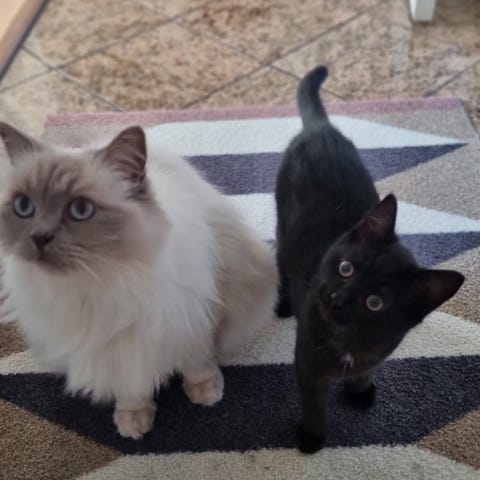Mimi er født d. 17. Marts 2023 og er halv ragdoll, kvart norsk skovkat og kvart almindelig huskat.