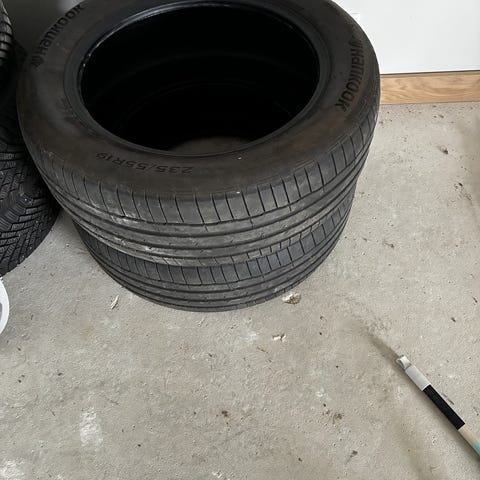 Hankok sommerdæk 2 styks 235/55R19 og 2 stykkes 255/50R19 - kørt 28000 km - god stand - Den var på den ny Audi Q4 - Hentes adresse i Brøndby strand - sendes ikke med fragt