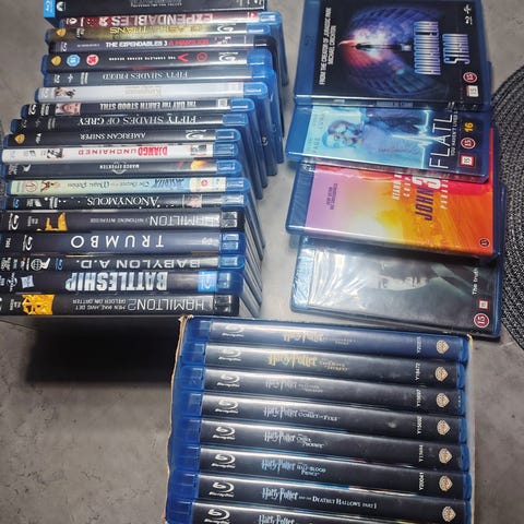 Sælger en samlet pakke Blu-ray film i rigtig god stand. Alle skiver er pæne og fungerer uden problemer. Perfekt til både børn og voksne – masser af klassikere, animation og action.