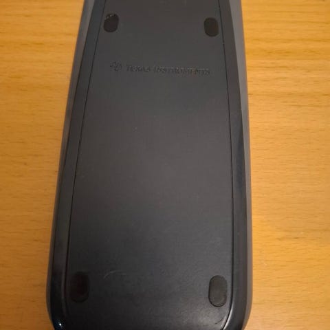 Texas Instruments TI-89 Titanium lommeregner med tastatur og LCD-skærm. Enheden kører på fire AAA-batterier og har et aftageligt batteridæksel. Designet til avancerede matematiske beregninger og teknisk brug.