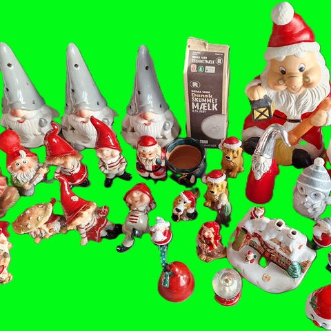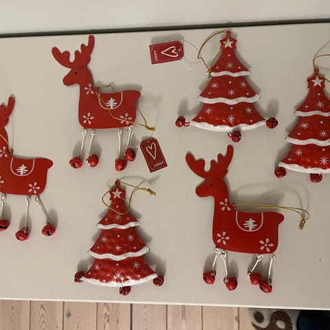 Julepynt sæt indeholdende et hjerteformet ornament med teksten 'God Jul' og flere små juleornamenter i forskellige former og farver. Materialer omfatter glas og metal. Passer til juledekorationer. Julepynt til træet -samt øvrigt pynt til stue juletræ. Nye kugler.
