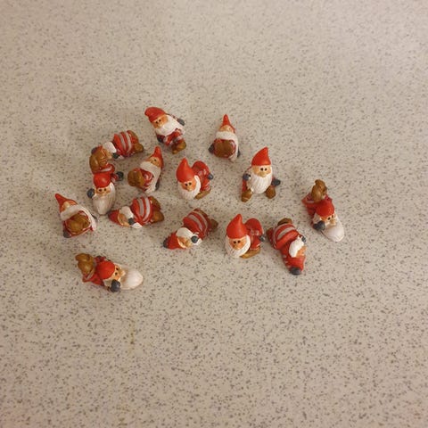 Otte super søde mini nisser, måler 2 cm. Sælges samlet.