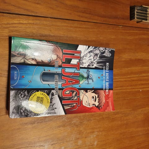 Nicole Boyle Rodgers Iltjagt bog med illustrationer på forsiden. Indeholder en personlig hilsen på første side. Bogens sider og omslag er synlige på billederne.