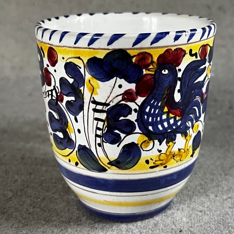 Søgeord: Håndmalet, Keramik, Porcelæn, Lertøj, Krus, vase, Majolika, Italiensk keramisk Kunst, Mailoica, Deruta, Italy, Italien, Majolika, Mailoica, Mailloica, Maiolaware, ARS, MGP DERUTA Italy, Håndmalet og håndlavet, Galletto, Hane, Vintage, Kunst, Tin-glaseret, ORVIETO, Orvietano