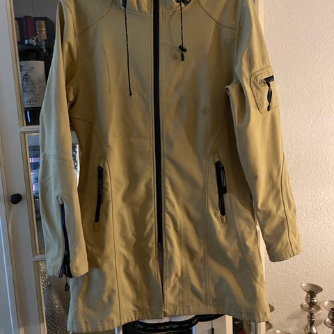 Ilse Jacobsen regnfrakke i beige farve, størrelse 38, lavet af polyester.
