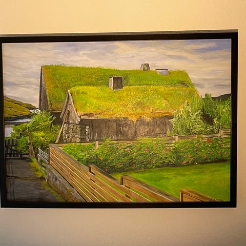 Maleri Sven Havsten - Mikkelsen landskabsbillede med hav og klipper