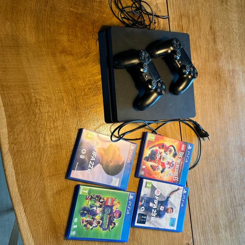 Playstation 4 Spilkonsol med controllere og spil