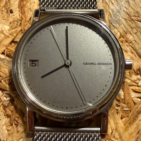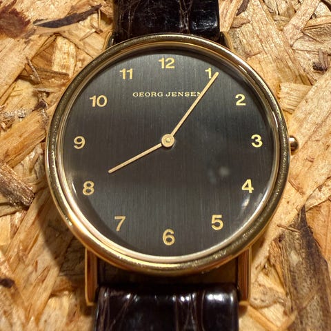 Farve: forgyldt kasse, sølv urskive og metal rem.