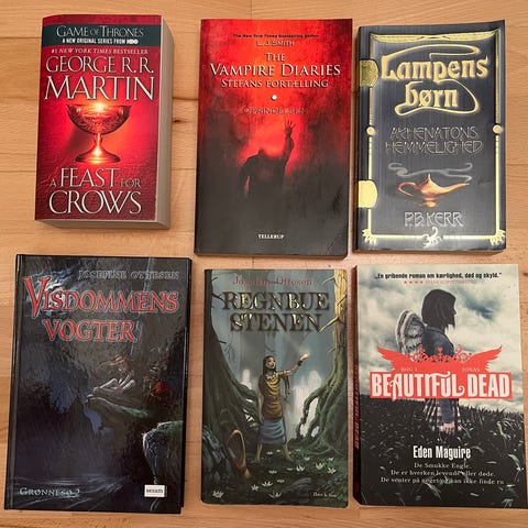 8 stk bøger sælges samlet for 10 kr. De er alle brugte i forskellig stand. De kommer i en mindre papkasse.