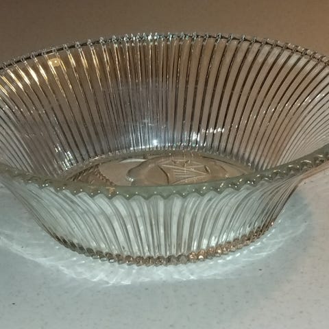 Tungt glasfad med det smukkeste swirlmønster i farverne hvid/aubergine.