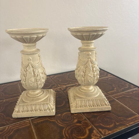 Lysestagen måler 10:cm i diameteren og 10 cm i højden. Ingen skår. Lidt spor af stearin