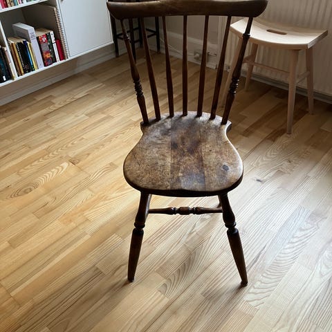 Fin gammel pindestol hvid . Kender ikke mærket.