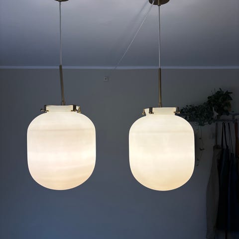 2stk House Doctor Circle Loft Lamp pendel i rødfarvet glas. Lampen har en rund form og en åben bud hvilket giver et moderne og stilrent udtryk. Den er designet til at blive hængt op og passer til forskellige indretningstyper. Virkelig smuk !!