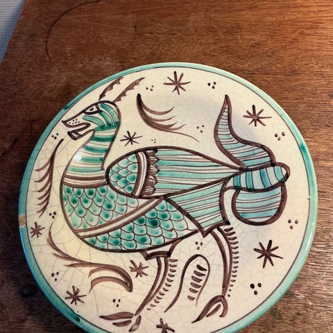 Keramisk fad med fuglemotiv