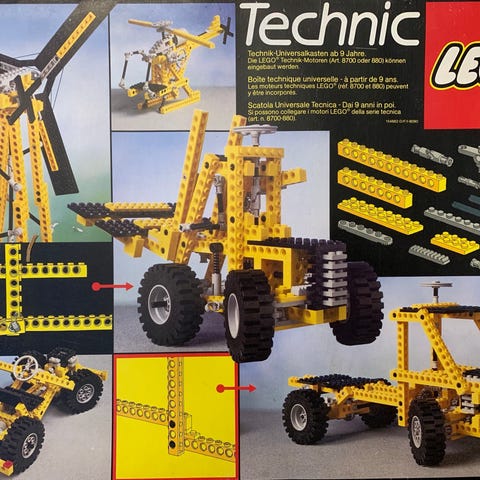 God stand. Komplet med alle klodser. Forhjul kan drejes via hjul på taget. Stempel i motor bevæger, når baghjul kører rundt. Affjedring på baghjul. 20x30 technichjul. 35cm lang model. Der kan bygges fem forskellige modeller: lastbil(billeder), bil, gaffeltruck, vindmølle og helikopter. Samlevejledning findes på ToysPeriod. Leveres usamlet. Lego vejer 0,4 kg - med emballage Max 1 kg. Porto 45,-.. Annoncerede pris er fast.