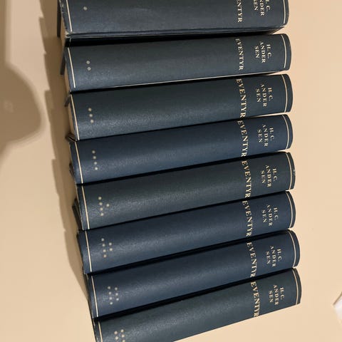 Bøgerne er indbundet og leveres i en rød opbevaringsæske med illustration af H.C. Andersen.