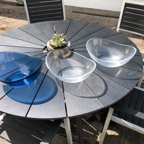 Glas, skåle, Holmegaard Verona, Verona, Holmegaard Per Lutgen - 3 blå Verona skåle 13x31x24, , pris pr. stk. 150kr., 3 klare til 100kr.,pr. stk., fra