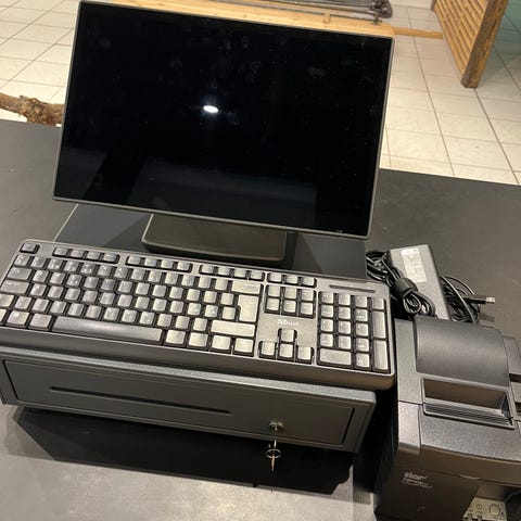 Skærmene er i god stand og ideelle til selvbetjening, bestilling, information, check-in m.m.