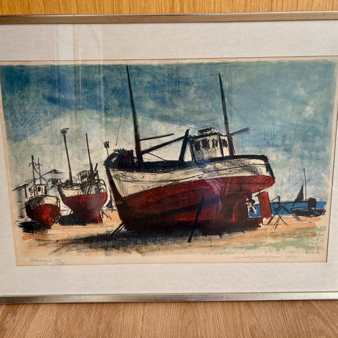 Annelise Søndergaard, “Solhverv”, litografi, sign. og dat. Rammemål 68 x 51 cm.