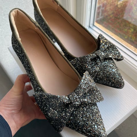 Disse glimtende fest sko har jeg desværre købt for store, og de er derfor kun brugt i en god times tid. De står som nye og vil erobre SÅ mange komplimenter! Der følger æske med.