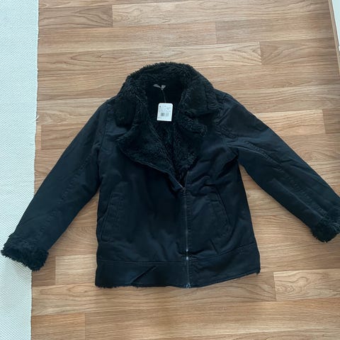 Utrolig lækker og varm vinter jakke med bælte. Varm pels i halsen og på hue kanten.