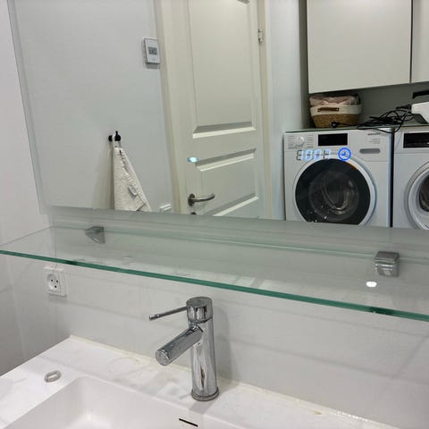 Badeværelseshylde, Kun glasset. ( pladen ).børstet på bagsiden..men glat på oversiden..Længde 78 cm..bredde 19 cm Tykkelse 6 mm