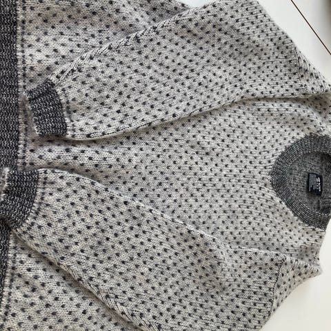 Ny strikket sweater i lækker råhvid uld. Islandsk sweater i uld, str. 42 /str. M/L. Aldrig brugt/ny, Flot islandsk håndarbejde. Ca mål på billede 4